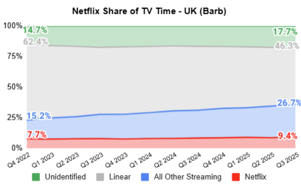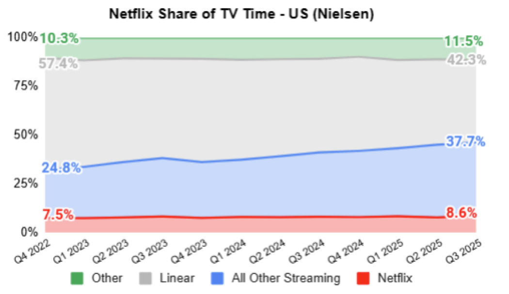 Netflix Share of TV Time in US and UK - Source: Netflix Financial Report Q3 2025