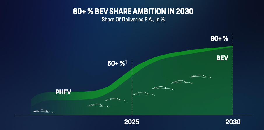One of my biggest concerns going into this analysis was Porsche's EV strategy or, more precisely, what it cost them to abandon it. Back in 2022, the company announced that 80% of its vehicles would be fully electric by 2030. At the time, with the Taycan's strong launch fresh in memory, this was a bold but not unreasonable goal — it is worth remembering that the Taycan actually outsold the iconic 911 in 2021.