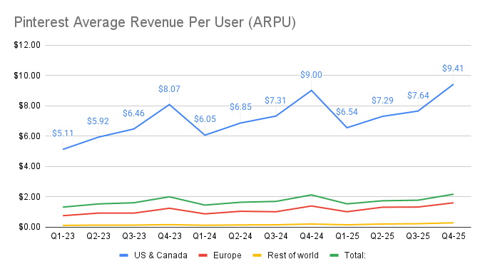 At the same time, Average Revenue Per User increased across all regions. US & Canada remain the clear leader with ARPU of $9.41, while Europe stands at $1.59 and Rest of World at $0.27. Blended ARPU came in at $2.16, higher than in the same quarter last year.